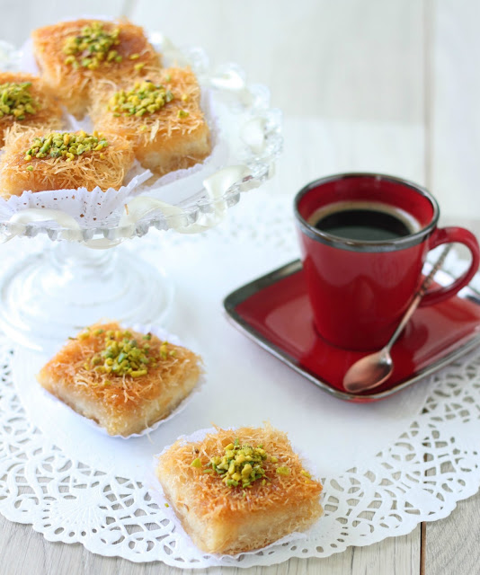 Toujours et encore avec les recettes spéciales ramadan pour égayer cette fois ci nos soirées et apporter de la douceur. Je vous propose donc une gourmandise tout droit venue du Moyen Orient: la Kounafa bil echta. Légère et savoureuse, elle accompagne à merveille un café bien corsé et finit en beauté le repas du soir.